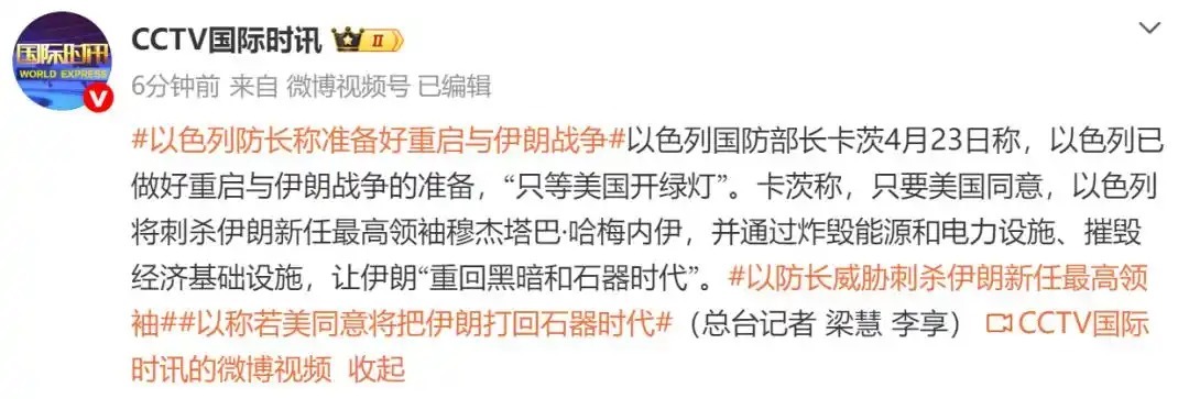 散户炒股 以色列防长:已准备好重启与伊朗的战争,只要美国同意,将刺杀伊朗最高领袖,炸毁能源电力设施,将伊朗打回“黑暗和石器时代” 散户炒股 来源:股海搏金配资 网站:众和策略 日期:2026-04-24 18:49:16 查看:92